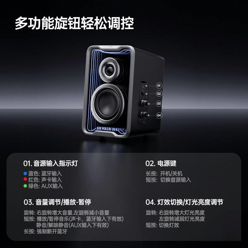 漫步者花再Halo2.0SE电玩音响,以其破界黑的设计,为游戏爱好者与音乐发烧友带来了一场视听盛宴。这款音响的设计简约而不失时尚,无论是搭配台式电脑还是作为桌搭的一部分,都能完美融入,彰显个性。